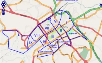 Le centre de Turku est situé à l'embouchure du fleuve Aura. Il comprend le centre commercial de la ville et certaines zones résidentielles centrales.