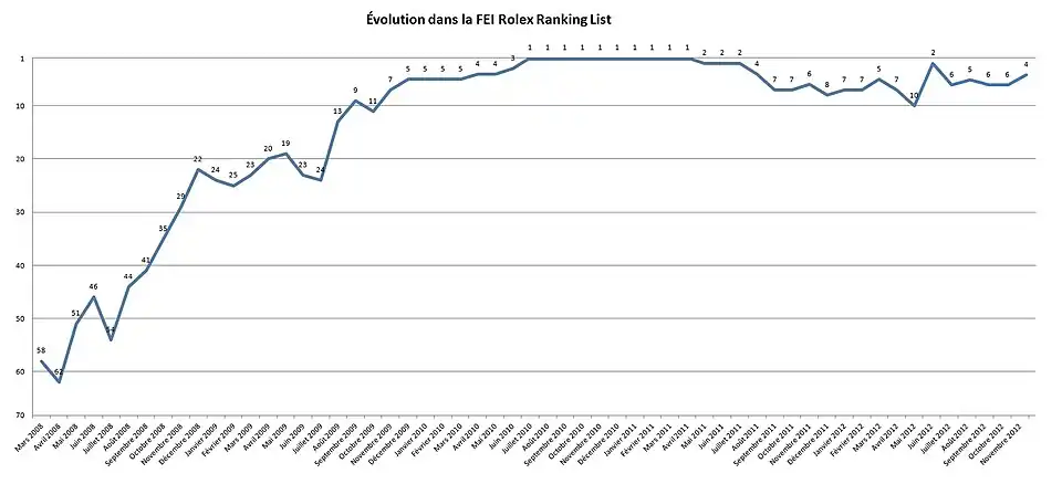 Il est resté numéro 1 mondial de à . Il est installé au sein de ses propres écuries à Pennedepie, en Normandie.