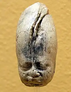 L'objet a été découvert en 1903 par William Matthew Flinders Petrie à Kom El Sultan, près d'Abydos. Il a été trouvé sans tête ; d'après Petrie, elle a été cassée par un accident en creusant[pas clair]. Lorsque Petrie comprit l'importance de cette découverte, il arrêta le chantier et promit une récompense à tout ouvrier qui trouverait la tête. Trois semaines plus tard, la tête fut retrouvée après un tamisage intense dans un niveau plus profond des décombres de la pièce[17].