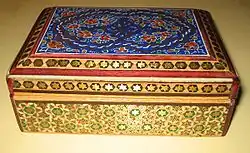 Le khatam kari est un travail de marqueterie fine et minutieuse dont les plus anciens exemples remontent à l'époque safavide : le khatam était alors tellement apprécié de la cour que certains princes en apprenaient la technique au même titre que la musique, la peinture ou la calligraphie. Aux XVIIIe et XIXe siècles, le khatam connut un déclin, avant d'être remis à la mode sous le règne de Reza Shah, au cours duquel se créent des écoles artisanales à Téhéran, Ispahan, et Chiraz.