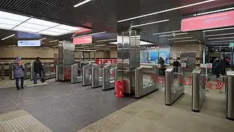 La station dispose de deux édicules reliés à la stations par des circulations souterraines, des escaliers et ascenseurs.