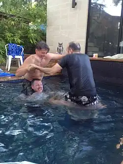 Un membre de l'équipe est assis sur les épaules de son coéquipier, ou est porté sur son dos ; celui qui porte est le véhicule, celui sur le dos est l'attaquant. Le but du jeu est de faire tomber le joueur de l'équipe adverse. Le porteur ne peut pas utiliser les bras ou les mains et doit utiliser son élan pour se jeter sur le porteur adverse. L'attaquant peut utiliser tous les moyens possibles pour séparer l'autre équipe ou la faire tomber. Si une équipe est séparée ou renversée de quelque manière que ce soit, elle perd, et se retire de l'arène. La dernière équipe restante gagne la partie. Il n’est pas rare que ce jeu soit interdit dans les piscines pour des raisons de sécurité.
