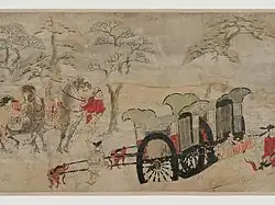 - ↑ (ja) « 囲碁伝来の伝説描く 「吉備大臣入唐絵巻」公開中 », Asahi Shinbun, (lire en ligne)