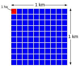 - 1 ha = 0,01 km2 (soit 1 × 10−2 km2)