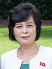 - ↑ Reuben Staines, « Female Presence Prominent in N. Korean Delegation », sur The Korea Times, (consulté le )