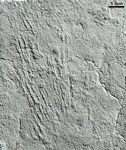 - ↑ (en) Andrey Yu. Ivantsov, « Trace Fossils of Precambrian Metazoans "Vendobionta" and "Mollusks" », Stratigraphy and Geological Correlation, vol. 21, no 3, , p. 252–264 (DOI 10.1134/S0869593813030039, lire en ligne).