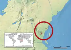 Cette espèce se rencontre en Tanzanie dans les monts Usambara et au Kenya dans les monts Shimba[1].