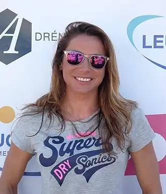 Charlotte Consorti, triple championne du monde de vitesse en Kite, au Mondial du Vent 2013 à Leucate France.