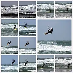 Le kitesurf [7], ou planche aérotractée[1],[2] ou encore kiteboarding, est un sport de glisse consistant à évoluer avec une planche à la surface d'une étendue d'eau en étant tracté par un cerf-volant (kite en anglais) spécialement adapté, nommé aile ou voile. Ce sport a pris son essor au début des années 2000.