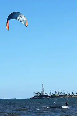 Le kitesurf pratiqué au large de Long Beach (Californie), États-Unis.