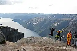 Le sommet culminant à 1 110 mètres d'altitude est une destination appréciée des randonneurs en raison de sa vue sur le Lysefjord en contrebas et par sa falaise abrupte qui en fait un lieu propice au base-jump. Sur ses pentes se trouve le Kjeragbolten, un rocher coincé dans une anfractuosité de la montagne.