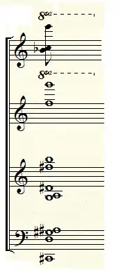 Le travail a un accord fondamental qui fonctionne comme un bloc de construction au sens harmonieux de tout le travail. Tous les autres accords et harmonies sont dérivés de cet accord. L'accord, représenté à la figure 1, est constitué de combinaisons d'accords de septième dominants, combinés les uns aux autres. Le résultat est un langage harmonique qui sonne de manière chromatique et dissonante, mais donne toujours une sensation de mouvement (Zuidam 40).