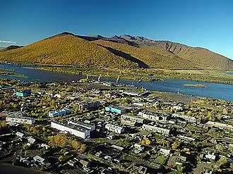 La commune est située à proximité de l'endroit où le cours du fleuve Kamtchatka bifurque en direction de l'est et de la mer de Béring.