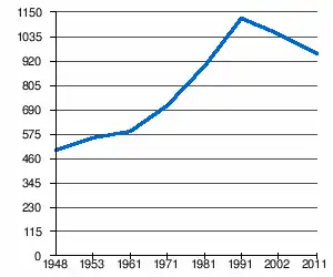 | 503 | 556 | 587 | 707 | 899 | 1 120 | 1 049[2] | 958[1] |