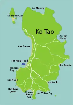 Ko Tao [1] ou Koh Tao (thaï: เกาะเต่า, API : [kɔ̀ʔ tàw]) est une île du golfe de Thaïlande à environ 70 kilomètres de la côte entre Surat Thani et Chumphon, 45 km au nord de l'île de Ko Pha Ngan et 60 km au nord de l'île de Ko Samui.