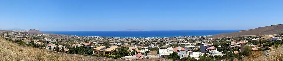 Vue distante du village depuis la route de Vathia.