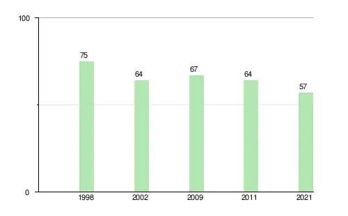 | Population en âge de travailler (entre 18 ans et 59 ans pour les femmes et les 64 ans pour les hommes) | 59,4 % | 60,0 % | 59,6 % |