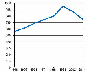 | 588 | 642 | 718 | 779 | 836 | 1 005 | 913[2] | 789[1] |