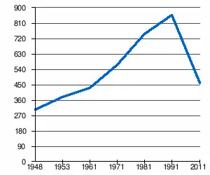 - 1 2 (sq) « Évolution de la population 1948-2011 », sur pop-stat.mashke.org (consulté le ).