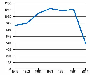 - 1 2 (sq) « Évolution de la population 1948-2011 », sur pop-stat.mashke.org (consulté le ).