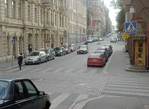 La rue part du sud au coin de Vuorimiehenkatu à Ullanlinna et se termine à Pohjoisesplanadi. Au sud de Vuorimiehenkatu, la rue est prolongée par Kapteeninkatu et au nord de Pohjoisesplanadi est prolongée par Mikonkatu.