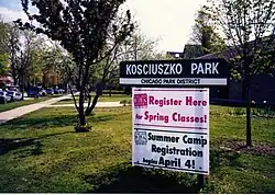 Kosciuszko Park a longtemps été un parc important pour la communauté polonaise du North Side de Chicago. Le parc abritait autrefois l'une des bibliothèques publiques les plus fréquentées de la Chicago Public Library avant sa fermeture dans les années 1950, ainsi que l'une des deux premières écoles polonaises à Chicago.