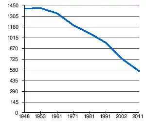 | 1 406 | 1 412 | 1 342 | 1 183 | 1 071 | 946 | 727[2] | 566[1] |
