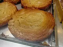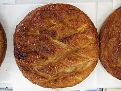 Le kouign-amann (/kwiɲaˈmɑ̃n/[1] ; pluriel en breton : kouignoù-amann, kouign signifiant « gâteau, tourte, motte», et amann, « beurre ») est une pâtisserie boulangère et une spécialité culinaire emblématique de la cuisine bretonne, originaire du Finistère en particulier, à base de pâte levée feuilletée, de beurre demi-sel et de sucre caramélisé.
