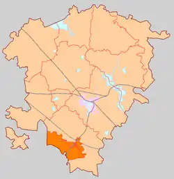 Les localités limitrophes sont Sinevo au nord-nord-est ; Khotilovo à l'est-est-nord, Komsomolski au sud-ouest, Gradobit à l'ouest-ouest-sud et Koujenkino (il y a un village du même nom que la commune) au nord-nord-ouest.