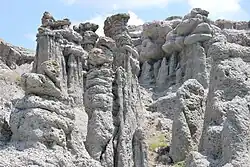 Le site fut formé par l'érosion naturelle pendant l'Holocène, soit au cours des 100 000 dernières années. La différence d’érodabilité entre les roches volcaniques du site expliquent la formation des cheminées, ainsi les roches friables des piliers sont coiffées par de l'andésite et de l'ignimbrite[3].
