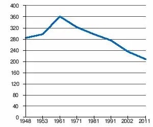 - 1 2 (sr + en) « Livre 20 : Vue d'ensemble comparative de la population en 1948, 1953, 1961, 1971, 1981, 1991, 2002 et 2011, données par localités) » [PDF], pages du recensement de 2011 en Serbie - Institut de statistique de la république de Serbie, (consulté le )