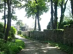 Le paysage en terrasse entourant la maison a été conçu par Frederick Law Olmsted. Certains de ses murs d'origine survivent.