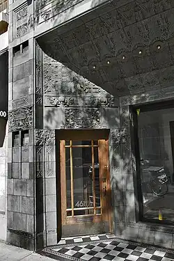 Avec ses formes végétales curvilignes et l'encadrement complexe de la baie vitrée, la façade de ce bâtiment, caractéristique de Chicago, est un prolongement de la croyance de Sullivan en l'architecture organique. Il a été commandé en 1921 par William P. Krause pour servir à la fois de résidence et de magasin de vente de piano, pour un coût total de 22 000 dollars. Krause a choisi son voisin, l'architecte William Presto, pour concevoir le bâtiment. Des années auparavant, Presto avait travaillé comme dessinateur pour Sullivan. Sullivan conçut toute la façade avec une ornementation en terre cuite richement détaillée en formes géométriques et curvilignes. Le matériau de la façade a été fourni par l'American Terra Cotta Company pour 3 770 dollars.