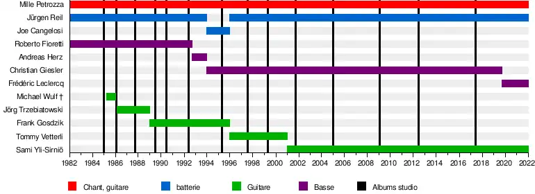 Christian Giesler Michael Wulf † Jörg « Tritze » Trzebiatowski Frank « Blackfire » Gosdzik Tommy Vetterli Roberto « Rob » Fioretti Andreas Herz Joe Cangelosi |