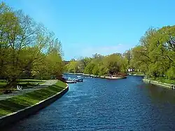 La rivière est longue de 0,75 km, sa largeur est d'environ 30 mètres et sa profondeur d'environ 3 mètres. Son débit annuel moyen est approximativement de 10 m3/s.