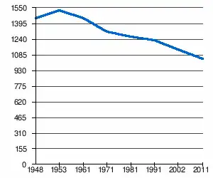 | 1 447 | 1 525 | 1 455 | 1 320 | 1 262 | 1 226 | 1 135[2] | 1 049[1] |