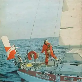 Le elle quitte Las Palmas aux Îles Canaries à bord de son yacht de 9,5 mètres, Mazurek. Cette première tentative se solde par un échec, elle rentre à Las Palmas pour y réparer les avaries de son yacht. Le 28 mars elle se lance à nouveau, cette fois-ci la croisière est un succès. Le 17 juillet elle gagne l'Océan Pacifique en passant par le canal de Panama, le 10 décembre elle arrive à Sydney en Australie. En 1977 elle continue son voyage via l'Océan Indien pour arriver à Durban en Afrique du Sud le 17 septembre. Le à 21 heures GMT, elle boucle le tour du monde aux coordonnées 16° 8′ 30″ N, 35° 50′ 0″ W, et finalement le elle à Las Palmas.