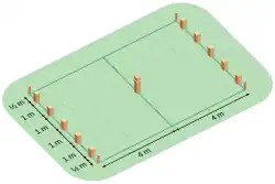 - Quatre pieux, ou marqueurs, indiquant les coins du terrain