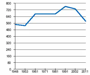 - 1 2 (sr + en) « Livre 20 : Vue d'ensemble comparative de la population en 1948, 1953, 1961, 1971, 1981, 1991, 2002 et 2011, données par localités) » [PDF], pages du recensement de 2011 en Serbie - Institut de statistique de la république de Serbie, (consulté le )
