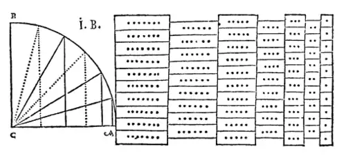 - ↑ Bürgi a nommé lui-même Kunstweg ou Artificium son algorithme. En allemand, Kunst signifie art dans le sens de travail bien fait et Weg chemin. Ainsi Kunstweg pourrait se traduire par démarche artistique ou démarche heuristique.