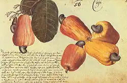 Zacharias Wagner, Noix de cajou, aquarelle du Livre des animaux du Brésil, 1641.
