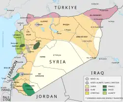 - ↑ « Who are Syria's minority groups? », Special Broadcasting Service, (consulté le ) Kurds are the largest ethnic minority in Syria, constituting around 10 per cent of the population - around 2 million of the pre-conflict population of around 22 million.