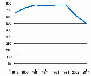 - 1 2 (sr + en) « Livre 20 : Vue d'ensemble comparative de la population en 1948, 1953, 1961, 1971, 1981, 1991, 2002 et 2011, données par localités) » [PDF], pages du recensement de 2011 en Serbie - Institut de statistique de la république de Serbie, (consulté le )