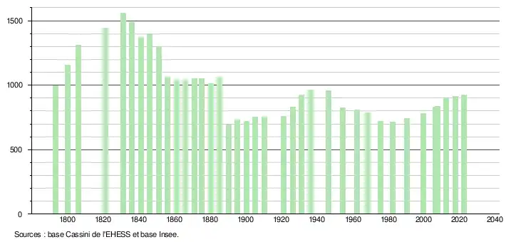 - ↑ Fiches Insee - Populations de référence de la commune pour les années 2006, 2007, 2008, 2009, 2010, 2011, 2012, 2013, 2014, 2015, 2016, 2017, 2018, 2019, 2020, 2021 et 2022.