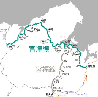 Lignes sous Kitakinki Tango Railway ( jusqu'à fin mars 2015). |