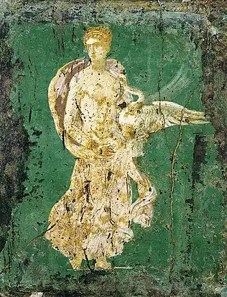 La fresque de la date de la première moitié du Ier siècle, et se trouvait au centre d'un panneau mural d'un cubiculum de la Villa Arianna, salle dans laquelle se trouvaient trois autres figures féminines, Flora, Médée et Diana : cet endroit de la villa était probablement dédié aux femmes. Ces œuvres ont été découvertes en 1759, à la suite des fouilles archéologiques menées par les Bourbons, puis détachées afin d'intégrer la collection royale.
