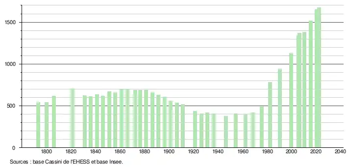 - ↑ Fiches Insee - Populations de référence de la commune pour les années 2006, 2007, 2008, 2009, 2010, 2011, 2012, 2013, 2014, 2015, 2016, 2017, 2018, 2019, 2020, 2021 et 2022.