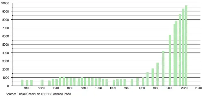 - ↑ Fiches Insee - Populations de référence de la commune pour les années 2006, 2007, 2008, 2009, 2010, 2011, 2012, 2013, 2014, 2015, 2016, 2017, 2018, 2019, 2020, 2021 et 2022.