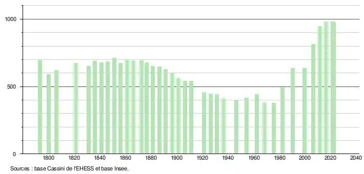 - ↑ Population municipale de référence en vigueur au 1er janvier 2025, millésimée 2022, définie dans les limites territoriales en vigueur au 1er janvier 2024, date de référence statistique : 1er janvier 2022.