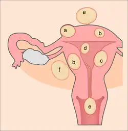 - Infertilité : le myome agit comme un corps étranger et entrave l'implantation du blastocyste. Différentes raisons peuvent expliquer ce phénomène, entre autres, une augmentation des contractions utérines, un effet IUD-like, une congestion veineuse, une altération de la vascularisation myométriale et un endomètre de moins bonne qualité. La présence de myome ne semble cependant pouvoir expliquer une hypofertilité que dans environ 3 % des cas[20]. Il semble qu'il s'agisse plutôt d'un encombrement mécanique (présence de myome intracavitaire ou déformation de la cavité par de volumineux myomes intramuraux)